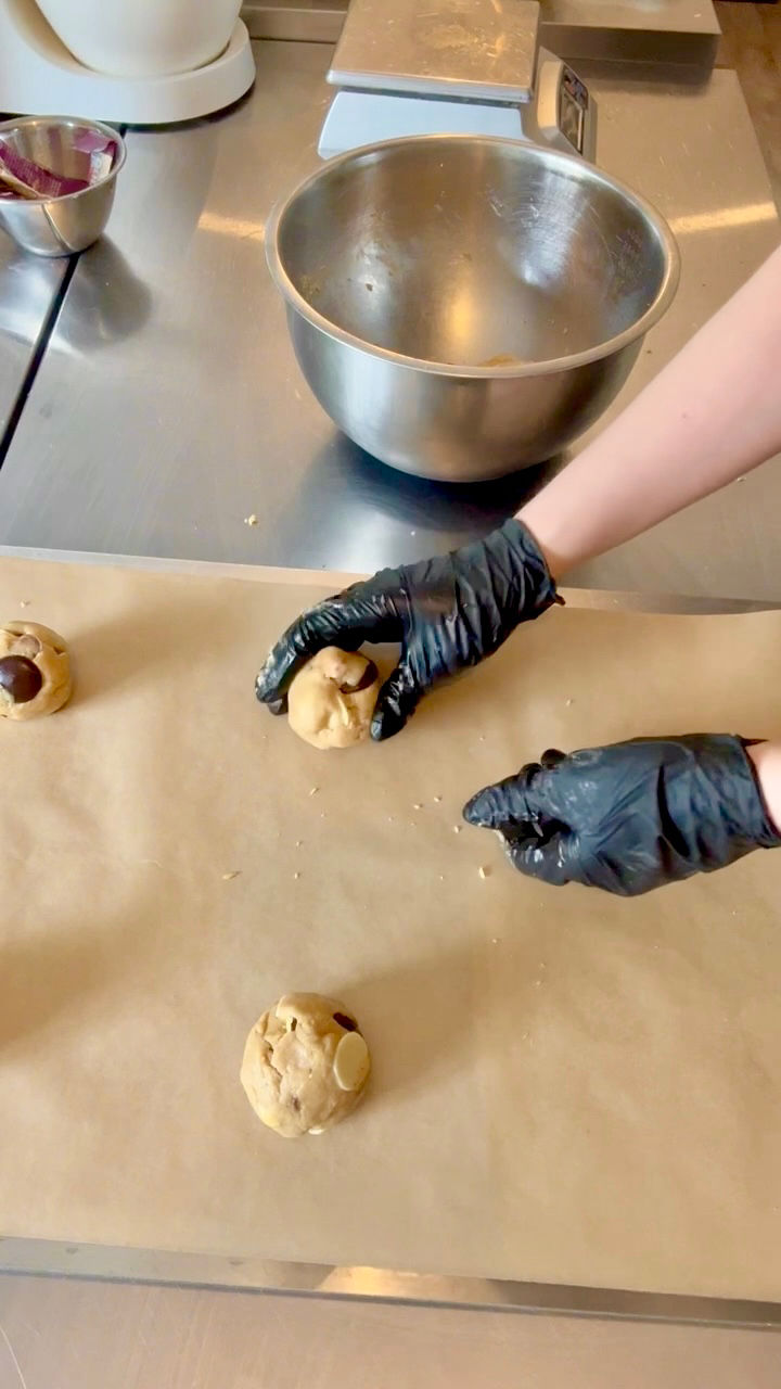 Put the 6 balls on the baking tray making sure they are spread out and have plenty of space to spread in the oven